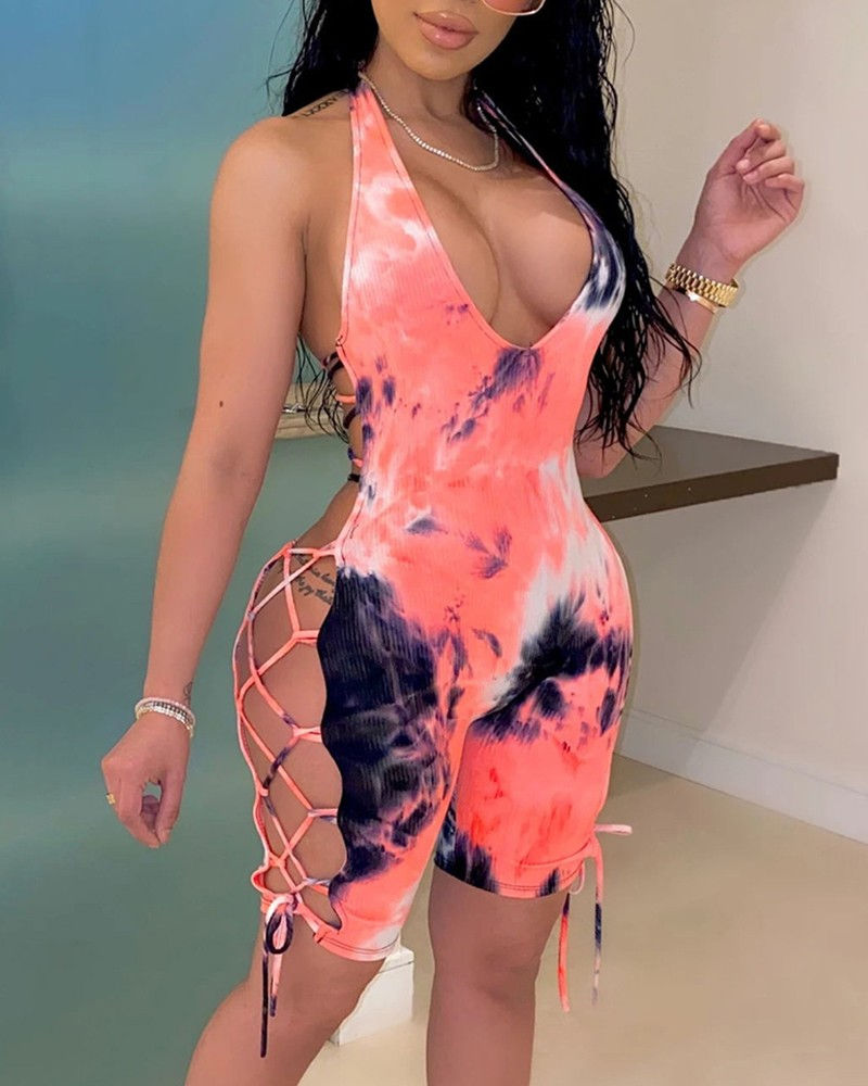 Sexy Tie Dye String Up Summer Romper
